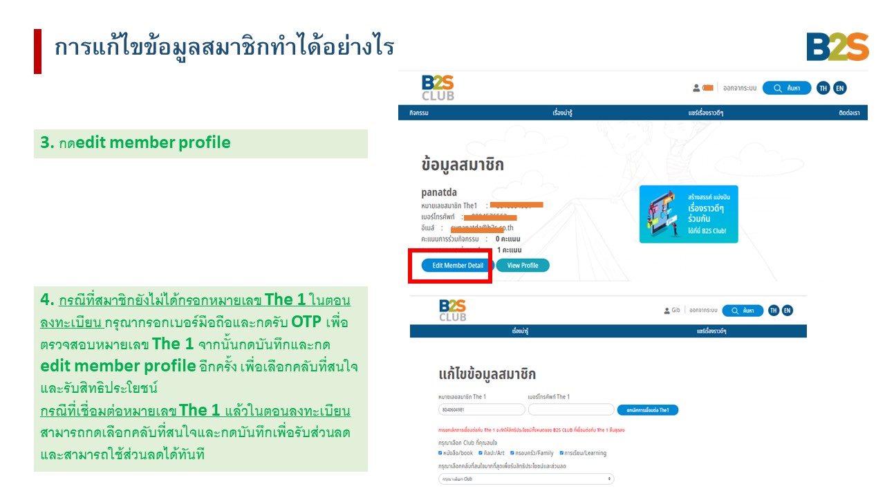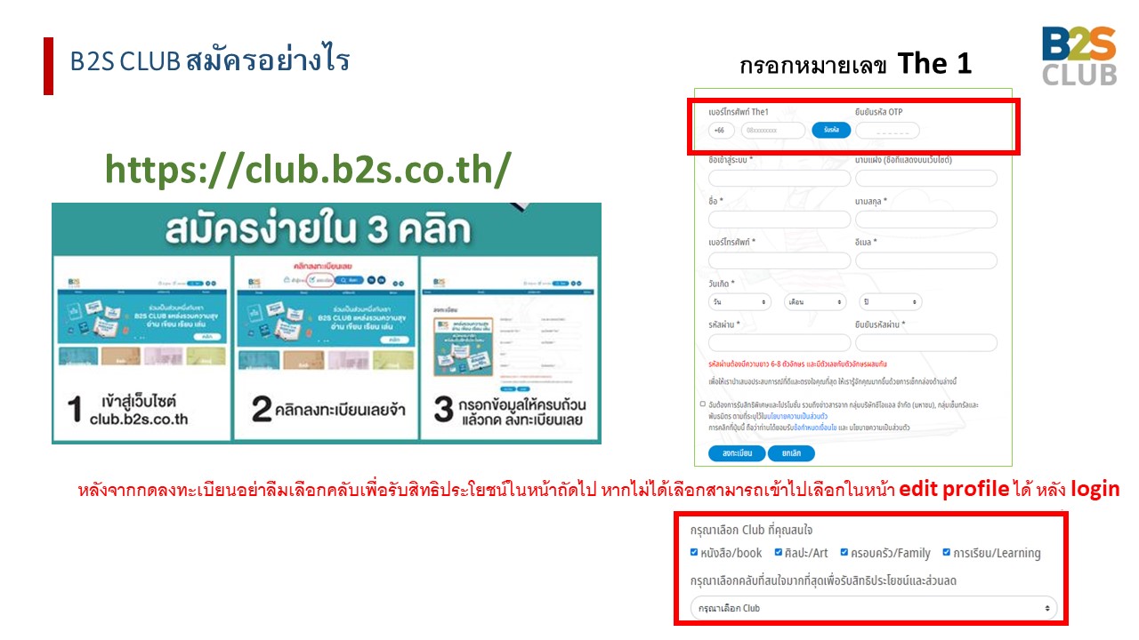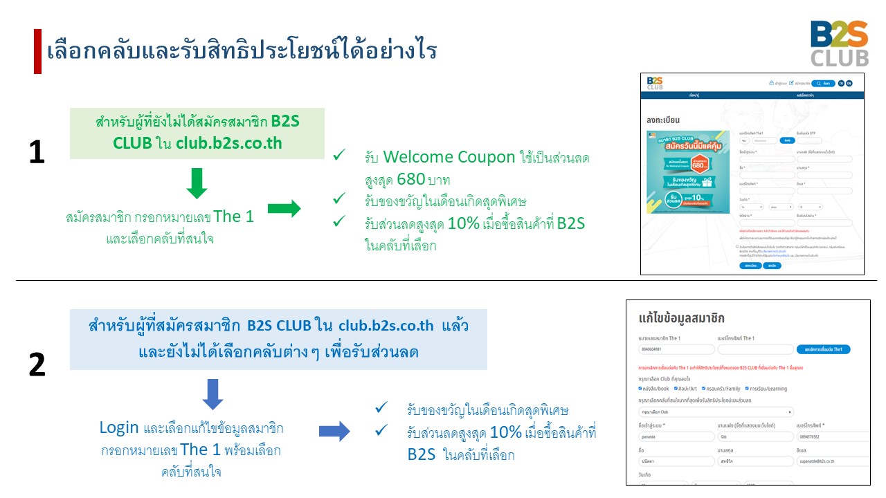 การเลือกคลับเพื่อรับสิทธิประโยชน์และส่วนลดต่างๆ ของ B2S CLUB