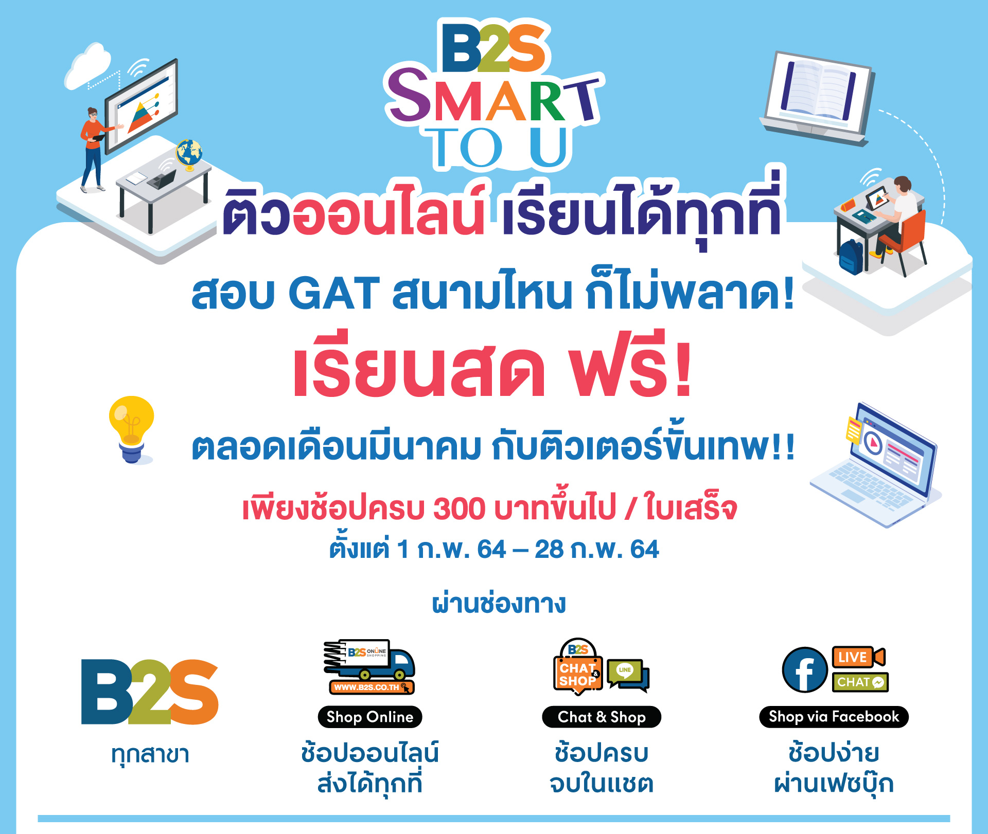 B2S SMART TO U ชวนติวออนไลน์ ซื้อสินค้าที่ B2S ครบ 300 บาท รับสิทธิ์ติวฟรี เดือนมี.ค. ตลอดทั้งเดือน